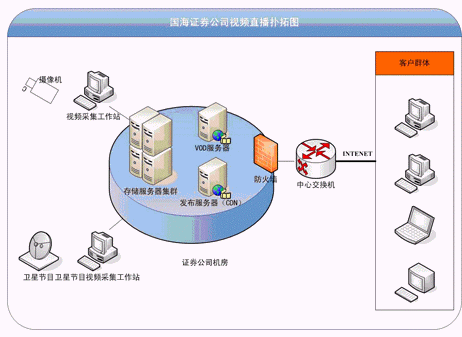 在同時(shí)對(duì)于局域網(wǎng)、廣域網(wǎng)進(jìn)行多路直播,采用一臺(tái)發(fā)布服務(wù)器就可以順利的完成發(fā)布工作了,由于公司方面對(duì)于系統(tǒng)錄制節(jié)目的要求,所以要有一臺(tái)服務(wù)器專們用來采集和存貯節(jié)目,在直播系統(tǒng)上, VIEWGOOD結(jié)合了自身的產(chǎn)品特點(diǎn),WebLIVE直播系統(tǒng)加強(qiáng)了采集、錄制與直播分離的優(yōu)勢(shì),采用了標(biāo)準(zhǔn)備的B/S架構(gòu),完全基于Web方式,可完全運(yùn)行于 Internet。在編碼技術(shù)上采用了最先進(jìn)的MPEG-4編解碼技術(shù),既保證了圖像的質(zhì)量,又大大縮減了視頻所占的帶寬,使得直播平臺(tái)更加的穩(wěn)定和高效。