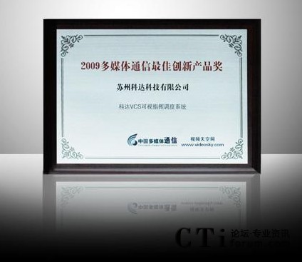 CTI論壇(ctiforum)3月29日消息(記者 袁青):近日,在《中國多媒體通信》雜志及視頻天空網(wǎng)強(qiáng)勢啟動(dòng)的“2009年度中國多媒體通信行業(yè)大獎(jiǎng)”評選活動(dòng)中,科達(dá)VCS可視指揮調(diào)度系統(tǒng)以其產(chǎn)品的專業(yè)性、直觀性、準(zhǔn)確性及有效性榮獲2009中國多媒體通信行業(yè)“創(chuàng)新產(chǎn)品獎(jiǎng)”。