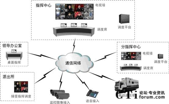 系統(tǒng)支持大型或中小型調(diào)度指揮中心部署,也支持在領(lǐng)導(dǎo)辦公室部署小型指揮點(diǎn);各個前端點(diǎn)可通過E1專線或以太網(wǎng)接入中心平臺,也可通過衛(wèi)星、無線等方式支持移動終端的接入。