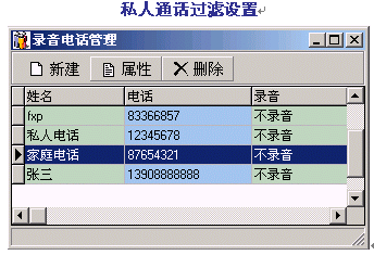 。。通過對某些特殊電話號碼的禁止錄音設(shè)置,DVS將自動過濾該號碼進行不錄音處理,以滿足私人通話及特殊場合的需要。