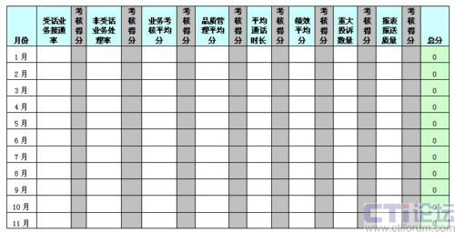 報(bào)表報(bào)送質(zhì)量 | 此項(xiàng)指標(biāo)考核的是由于客服中心外送報(bào)表質(zhì)量問題,被相關(guān)部門工作人員指正、批評(píng)或投訴的次數(shù)。 | 10 |