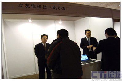 在隨會附設的展臺前,MyCRM更是受到不少參會企業(yè)的關(guān)注。圖為MyCRM咨詢顧問為參會企業(yè)家講解MyCRM系統(tǒng):