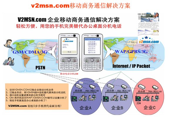 從美國人貝爾1876年發(fā)明電話一百多年來,當電話進入企業(yè)辦公后,企業(yè)利用電話通信技術(shù)為企業(yè)的經(jīng)營帶來了溝通協(xié)作的高效率,傳統(tǒng)PSTN電話網(wǎng)絡的時代企業(yè)都是自購和部署傳統(tǒng)的PBX(私有交換系統(tǒng)或集團電話系統(tǒng))或采用PSTN固網(wǎng)運營商提供的CENTREX(匯線通,集線通)來滿足企業(yè)對外的總機和內(nèi)部分機之間通信的需要、到了移動通信的時代,也就是前兩年移動運營商(中國移動、中國聯(lián)通)為了開發(fā)企業(yè)的通信市場推出了我們稱為“第一代的移動總機”或“商務總機”。而IP互聯(lián)網(wǎng)前幾年的迅速發(fā)展以及NGN下一代網(wǎng)絡發(fā)展逐漸成熟并開始進入商用,F(xiàn)MC(Fixed-mobile