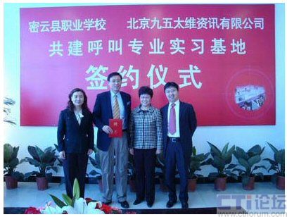 CTI論壇(ctiforum)04月30日消息: 近日,密云縣職業(yè)學(xué)校與北京九五太維資訊有限公司校企合作共建呼叫專業(yè)實習(xí)基地簽約儀式在密云縣職業(yè)學(xué)校隆重舉行,市教委職成處處長李敏,縣委常委副縣長王春林、副縣長錢福生、副縣長徐芳出席簽約儀式并發(fā)表了講話。密云縣教委主任李鐘勤,北京九五太維資訊有限公司董事長汪遠(yuǎn),首席執(zhí)行官李寶民及其培訓(xùn)師團(tuán)隊,密云縣經(jīng)濟(jì)開發(fā)區(qū)總公司及部分入?yún)^(qū)呼叫企業(yè)出席了簽約儀式。在簽約儀式上,密云縣教委主任李鐘勤向九五太維公司首席執(zhí)行官李寶民博士頒發(fā)了聘書,聘請李寶民博士為密云縣職業(yè)學(xué)校名譽(yù)校長。