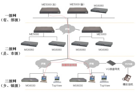 采用雙機(jī)熱備技術(shù),2臺ME5000通過IP網(wǎng)絡(luò)(局域網(wǎng)、廣域網(wǎng))在線熱備。出現(xiàn)意外情況時,備份ME5000將及時接替原MCU將會議繼續(xù)召開,不需要終端進(jìn)行任何操作,保障會議延續(xù)。