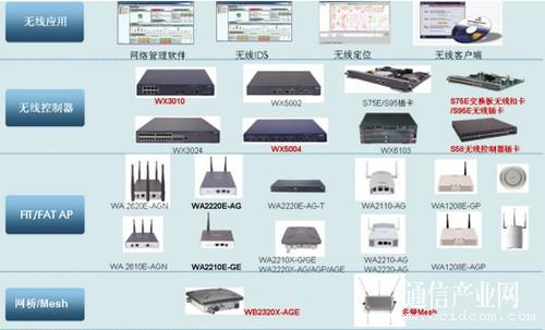 H3C具有FIT AP/FAT AP全系列無線產(chǎn)品。高端無線控制器產(chǎn)品WX6103,是業(yè)界第一款支持萬兆的、采用多核處理器的產(chǎn)品,單個控制板可以提供高達640個AP的接入、管理能力。WX3024無線控制器,集成24個交換口,同時支持POE+以太網(wǎng)供電功能。H3C同時還提供插卡形式的控制器,配合S9500、S7500系列交換機使用,具備更高的系統(tǒng)容量、性能及可靠性。