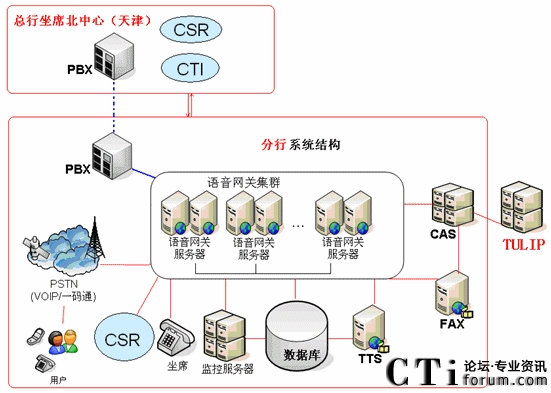對于山東省分行連接總行呼叫中心北中心心的情況,農(nóng)業(yè)銀行對系統(tǒng)的總體結(jié)構(gòu)已經(jīng)做了比較詳細的規(guī)劃,異地坐席中心的系統(tǒng)結(jié)構(gòu)圖如下: