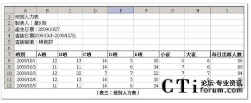 - 班別人力表:提供當天不同班別之排定人數(shù),便于以班別為思考的管理方式。