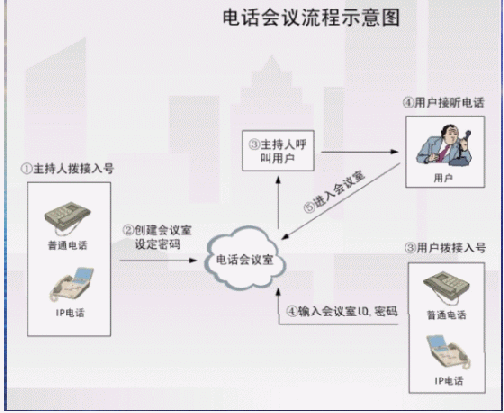- 多方電話會議功能,最多可以實現(xiàn)16方通話。電話會議介紹(當會議室中僅有一個人的時候,聽到的是等待音樂)。