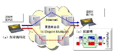 由于是利用多路徑路由發(fā)送分割的數(shù)據(jù),1條路徑被竊聽只會(huì)有部分分割數(shù)據(jù)被竊聽。不過,如果發(fā)送分割數(shù)據(jù)的全部路徑都被竊聽,分割數(shù)據(jù)也可能全部流出。為此,此次的秘密通信系統(tǒng)設(shè)想采用基于覆蓋路由器的網(wǎng)絡(luò)(覆蓋網(wǎng)絡(luò)),將全部數(shù)據(jù)被竊聽的可能性減小到了接近0。這是因?yàn)楦采w路由器的通信路徑能夠進(jìn)行實(shí)時(shí)切換。此次的保密通話系統(tǒng)將在覆蓋網(wǎng)絡(luò)達(dá)到實(shí)用化水平時(shí)投產(chǎn)實(shí)用。計(jì)劃在3~4年內(nèi)實(shí)現(xiàn)。