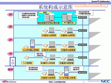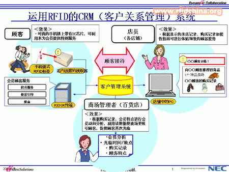 “上海婦女用品商店”B館,是以高雅的購物方式吸引顧客廣泛關(guān)注的,此外,倍受業(yè)界關(guān)注的是其在裝修之際,與NEC共同引進了國內(nèi)首個運用電子標簽(RFID)技術(shù)的客戶關(guān)系管理(CRM)系統(tǒng)。今后在百貨商店經(jīng)營中所需的細致的顧客管理 。