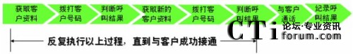 對(duì)于預(yù)覽式外呼系統(tǒng),以上所有過程都要有人工座席員的參與和執(zhí)行: