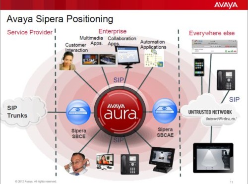 收購Sipera,Avaya獲得了適用于會話啟動協(xié)議(SIP)中繼的企業(yè)級會話邊界控制技術(shù),從而增強(qiáng)Avaya統(tǒng)一通信產(chǎn)品線的實(shí)力,并為客戶和渠道合作伙伴提供更大的靈活性,幫助他們實(shí)現(xiàn)各種安全功能進(jìn)而創(chuàng)造商業(yè)價值。Sipera開放的、基于標(biāo)準(zhǔn)的解決方案適用于Avaya和非Avaya網(wǎng)絡(luò)。Sipera解決方案與Avaya Aura整合后,將能為客戶提供安全的VoIP、SIP中繼、視頻會議、基于云的通信、即時通信以及協(xié)作工具,使客戶能隨時隨地為使用企業(yè)級或消費(fèi)類設(shè)備的員工提供服務(wù)。
