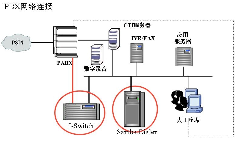Samba Dialer和潤迅通信哈里斯數(shù)字程控交換機(jī)利用ISDN PRI進(jìn)行匯接,共享現(xiàn)有話機(jī),大大保護(hù)了投資。Samba Dialer直接通過PRI進(jìn)行信令檢測,不依賴程控交換機(jī)的CTI功能,這樣可以避免大量外撥電話對CTI資源的占用而影響呼入業(yè)務(wù)的運(yùn)作。另外,交換機(jī)的CTI接口一般不具備很高的穩(wěn)定性,Samba