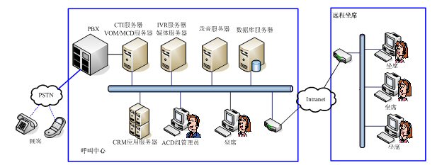 VOM MCD系統(tǒng)是一個(gè)獨(dú)立于PBX之外的智能路由系統(tǒng),從設(shè)計(jì)之初,就采用開(kāi)放的技術(shù)標(biāo)準(zhǔn)和協(xié)議,支持各種主流的PBX,支持VOIP功能,實(shí)現(xiàn)遠(yuǎn)程坐席管理以及分布式呼叫中心的集中管理。
