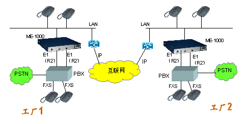 該電力公司采用我們的方案,使用E1(R2信令),實(shí)現(xiàn)了IP-PBX和原PBX混合組網(wǎng),以最少的投資,達(dá)到了設(shè)計(jì)目標(biāo),滿足了既定需求。