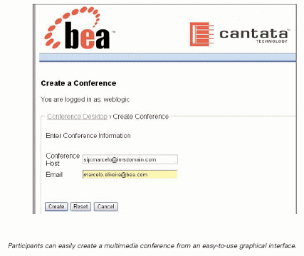 在上述應用中,一用戶建立了一個多媒體會議會話。該會議的進行一如我們平常所熟悉的基于運營商的語音會議系統(tǒng)的商務會議。不同的是,它使用了基于Web的圖形交互, 使得用戶可以建立會議時間以及受邀請的參與人的列表,此外, 該應用還發(fā)出了一封含有該會議相關的聯(lián)絡信息的電子郵件。并且,它還充分利用了Cantata SnowShore 媒體服務器的高級多媒體功能為會議參與人提供豐富的多媒體體驗。