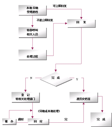 整個網(wǎng)絡采用只在集中受理中心設立一個集中監(jiān)控系統(tǒng),負責監(jiān)控全網(wǎng)的客戶業(yè)務、服務、技術支持和投訴等等業(yè)務,該系統(tǒng)基于事件管理的思想,提供包括創(chuàng)建、解決、分配、反饋、跟蹤、回訪等節(jié)點在內的閉環(huán)處理模式。例如系統(tǒng)可以根據(jù)客戶反映問題的時間以及緊急程度,按照系統(tǒng)約定的處理時限對處理過程實時跟蹤和記錄,當處理超時時回自動給出報警信息,提示相關的操作人員及主管人員。同時根據(jù)約定還可以將受理的問題按照約定的方式自動發(fā)送到相關的處理部門,由處理部門進行處理。