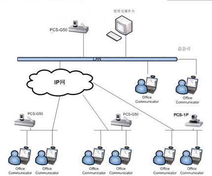 在此方案中,在宜興公司大樓六樓報(bào)告廳配置一套SONY PCS-G50高端視頻會(huì)議終端;并在此終端內(nèi)安裝了支持6點(diǎn)多點(diǎn)會(huì)議的H.323內(nèi)置多點(diǎn)MCU和數(shù)據(jù)雙流模塊。