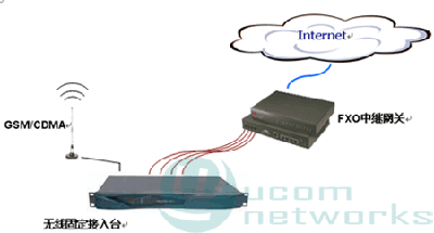 本方案采用FXO中繼語音網(wǎng)關(guān)接入互聯(lián)網(wǎng),由當(dāng)?shù)仄胀M電話線路落地對接網(wǎng)關(guān)FXO口,采用電話卡綁定網(wǎng)關(guān)預(yù)付費(fèi)計(jì)費(fèi)實(shí)現(xiàn)運(yùn)營。落地線路接入可以使用本地固定PSTN線路,也可以轉(zhuǎn)制無線電話,采用固定臺接入,2種拓?fù)鋱D如下所示。
