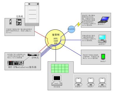 移動(dòng)電話:通過(guò)MXT-IPMediaServer媒體服務(wù)器系統(tǒng),任何上線用戶需要呼叫公司總部所在地的普通市話或者移動(dòng)電話、以及呼叫其他在系統(tǒng)覆蓋到的地區(qū)電話時(shí),可以直接通過(guò)隨機(jī)攜帶的電腦,直接進(jìn)行呼叫,而無(wú)需通過(guò)本地電話或者手機(jī)呼叫。