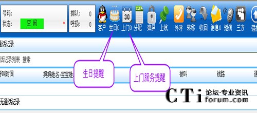 2、號碼歷史記錄自動查詢,寶貝媽媽聯(lián)絡(luò)情況一點(diǎn)即知,并配合特別設(shè)計的母嬰客戶信息管理系統(tǒng),實(shí)現(xiàn)來電、去電自動彈屏,業(yè)務(wù)種類、聯(lián)系意向、用戶類型、消費(fèi)能力同時呈現(xiàn);
