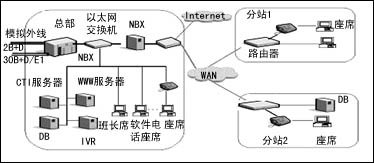 網(wǎng)音十萬元級高性能IPCC能夠在WAN/LAN內(nèi)真正實現(xiàn)全包交換技術(shù)的語音應(yīng)用平臺。它包括一個基本的NBX硬件平臺單元、一臺高性能服務(wù)器及相關(guān)路由控制、呼叫管理、通用坐席應(yīng)用及通用數(shù)據(jù)庫接口等軟硬件產(chǎn)品,它支持8外線、8座席的應(yīng)用規(guī)模。在此平臺基礎(chǔ)上,系統(tǒng)擴(kuò)容時只需增加相關(guān)軟件使用許可證、外線接口卡及坐席終端即可輕松將此平臺服務(wù)容量擴(kuò)充至最大外線容量90端口,最大座席容量150席的應(yīng)用規(guī)模。同時,此種應(yīng)用解決方案對集中呼入/呼出控制,分散點多,每分散點座席數(shù)少,個點通過數(shù)據(jù)線路與接入平臺連接的分布式Call