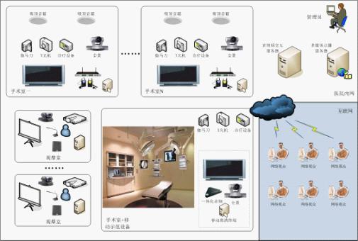 以中心MCU為核心,依托用戶現(xiàn)有內(nèi)部網(wǎng)絡(luò)和互聯(lián)網(wǎng),實(shí)現(xiàn)醫(yī)院內(nèi)部手術(shù)室與觀摩室的交互,實(shí)現(xiàn)用戶之間能夠召開(kāi)交互式指導(dǎo)會(huì)議,實(shí)現(xiàn)手術(shù)指導(dǎo)會(huì)議、家屬遠(yuǎn)程觀摩手術(shù)、手術(shù)技術(shù)討論、技術(shù)培訓(xùn)以及日常的小型手術(shù)交流等。