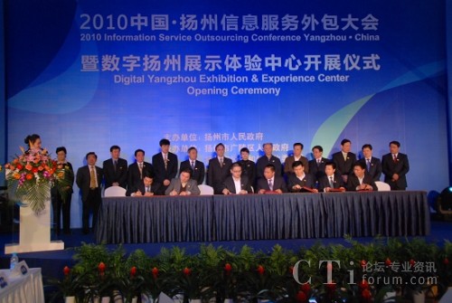 CTI論壇(ctiforum)4月22日消息(記者 潘婷婷):4月21日上午,由揚州市人民政府主辦、揚州市廣陵區(qū)人民政府及揚州市經(jīng)濟和信息委員會承辦、中國國際投資促進會支持的“2010中國·揚州信息服務(wù)外包大會暨數(shù)字揚州展示體驗中心開展儀式”在名為“中國聲谷”的江蘇信息服務(wù)產(chǎn)業(yè)基地(揚州)召開。