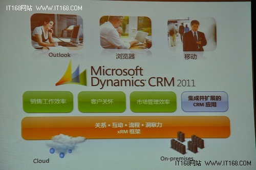 張謙介紹,傳統(tǒng)的IT企業(yè)內(nèi)部管理強調(diào)的是流程性和規(guī)范性,而Microsoft Dynamics CRM 2011是一套完整的客戶關(guān)系管理解決方案,它整合了Microsoft Office、Microsoft Outlook、Lync Server、Sharepoint Server等其它微軟軟件產(chǎn)品,并能方便地與之集成,為各種規(guī)模的企業(yè)提供專屬解決方案,包含了強大的銷售、市場營銷和客戶服務(wù)管理功能,并可提供擴展CRM應(yīng)用,以幫助企業(yè)發(fā)現(xiàn)商機,從而發(fā)展長久而穩(wěn)固的客戶關(guān)系。張謙將這款產(chǎn)品的特性總結(jié)為“超熟悉”“高智慧”“更靈活”,即繼續(xù)采用被用戶熟知的界面,實時分析業(yè)務(wù)狀況,精準進行分析預(yù)測、靈活的可定制及快速部署。