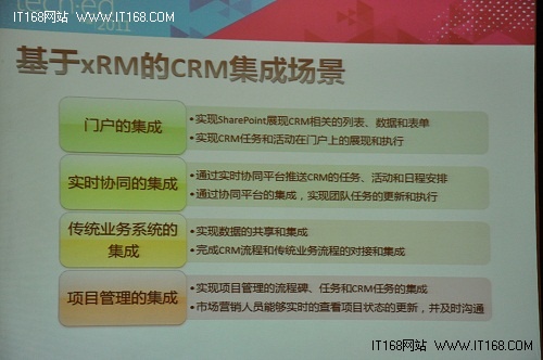 而基于xRM的CRM集成則包括門戶的集成、實時協(xié)同的集成、傳統(tǒng)業(yè)務(wù)系統(tǒng)的集成和項目管理的集成。