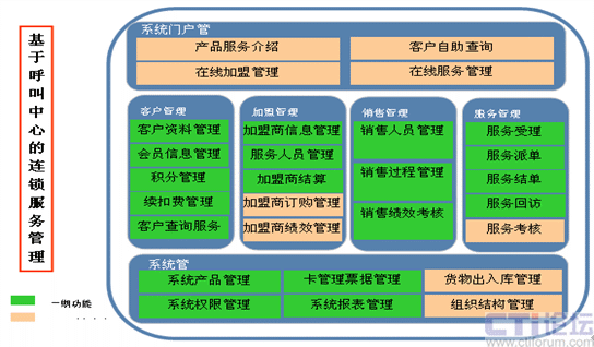 客戶管理——對(duì)客戶的基本資料信息進(jìn)行管理和使用業(yè)務(wù)和服務(wù)的過程進(jìn)行管理 加盟管理——對(duì)加盟商的基本信息進(jìn)行管理,對(duì)加盟商的服務(wù)人員進(jìn)行管理 銷售管理——對(duì)銷售代表信息進(jìn)行管理,對(duì)銷售計(jì)劃制定和銷售任務(wù)過程進(jìn)行跟蹤管理 服務(wù)管理——受理客戶的服務(wù)請(qǐng)求,根據(jù)客戶位置和時(shí)間要求,安排服務(wù)派單,并對(duì)客戶服務(wù)結(jié)果進(jìn)行回訪。