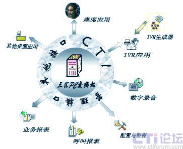 本部件在通用工業(yè)控制機(jī)平臺(tái)上加插三匯各類語(yǔ)音卡、座席卡、傳真,通過(guò)三匯交換核心軟件,構(gòu)成的一個(gè)集自動(dòng)呼叫分配,呼叫信息采集,呼入呼出控制,傳真收發(fā)等諸多功能于一體的綜合通訊服務(wù)系統(tǒng)。