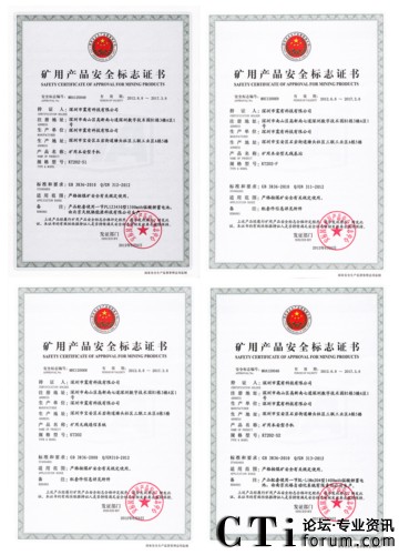 CTI論壇(ctiforum)6月15日消息(記者 楊佳林):震有科技順利通過(guò)安標(biāo)國(guó)家礦用產(chǎn)品安全標(biāo)志中心頒發(fā)礦用無(wú)線通信系統(tǒng)、礦用本安型無(wú)線基站、礦用本安型手機(jī)S1、礦用本安型手機(jī)S2的四項(xiàng)礦用產(chǎn)品安全標(biāo)志證書(shū),這標(biāo)志著震有科技KT202礦用融合通信系統(tǒng)獲得煤礦安全領(lǐng)域的通行證,為公司大力拓展煤礦能源市場(chǎng)奠定了堅(jiān)實(shí)有利的基礎(chǔ)。