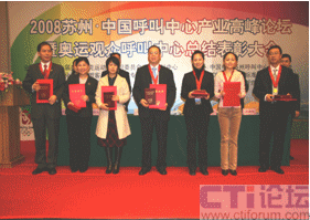 CTI論壇(ctiforum)04月14日消息: 日前,”蘇州 2009中國呼叫中心高峰論壇暨奧運觀眾呼叫中心志愿者表彰大會”在蘇州工業(yè)園區(qū)召開,表彰在奧運期間對奧運呼叫中心作出突出貢獻的十三家志愿者選派單位及先進個人。大會由第二十九屆奧林匹克運動會組織委員會與中國信息化推進聯(lián)盟客戶關(guān)系管理專業(yè)委員會共同主辦,蘇州工業(yè)園區(qū)、CCCS聯(lián)絡(luò)中心標準委員會、ICMI客戶管理學院(中國區(qū))共同承辦。