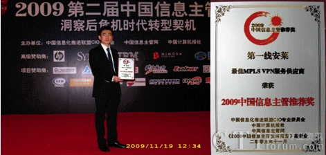 CTI論壇(ctiforum)11月25日消息(記者 張塵):2009年11月19日,2009年中國(guó)信息主管年會(huì)在北京世紀(jì)金源大飯店盛大召開(kāi),會(huì)議共吸引了各行業(yè)千名CIO線(xiàn)上與線(xiàn)下的參與。作為中國(guó)CIO云集的高峰會(huì)議,第一線(xiàn)安萊全程參與了本次大會(huì),從產(chǎn)品方案與展示等方面向業(yè)界展示了第一線(xiàn)安萊10年多來(lái)在MPLS VPN服務(wù)領(lǐng)域的最佳實(shí)踐經(jīng)驗(yàn)與卓越的市場(chǎng)領(lǐng)導(dǎo)地位,贏得了各與會(huì)嘉賓及CIO們的普遍認(rèn)同和稱(chēng)贊。