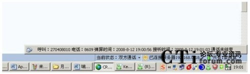 實(shí)時(shí)顯示呼叫時(shí)長(zhǎng)和客戶來(lái)電號(hào)碼,并且顯示了常用的轉(zhuǎn)接業(yè)務(wù)組和軟電話可操作模塊。