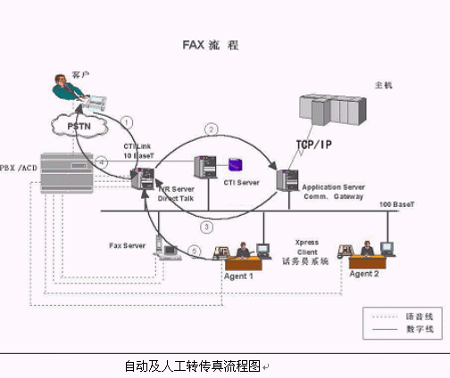對(duì)Call Center而言,也有自動(dòng)傳真和人工傳真兩種服務(wù),下面主要介紹前一種方式的流程。