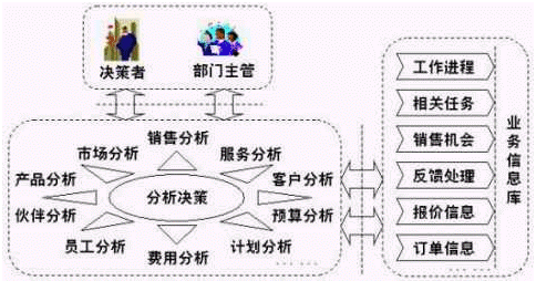 分析決策:決策是企業(yè)管理者必須經(jīng)常進(jìn)行的工作。決策對(duì)企業(yè)的意義十分重大,可以說(shuō)決策水平的高低,決定了企業(yè)的競(jìng)爭(zhēng)力。然而,要想做出科學(xué)、正確的決策,就離不開(kāi)對(duì)歷史和現(xiàn)實(shí)信息的分析。TurboCRM將企業(yè)的各種業(yè)務(wù)統(tǒng)一存儲(chǔ)在業(yè)務(wù)信息數(shù)據(jù)庫(kù)之中,這樣就為企業(yè)針對(duì)業(yè)務(wù)進(jìn)展情況作定量分析打下了堅(jiān)實(shí)的基礎(chǔ)。TurboCRM同時(shí)提供了多種分析工具,可以方便的對(duì)客戶、產(chǎn)品、進(jìn)程、任務(wù)、預(yù)算、計(jì)劃、費(fèi)用等等信息進(jìn)行分類統(tǒng)計(jì),用以分析銷售、市場(chǎng)和服務(wù)業(yè)務(wù)的運(yùn)行情況,從而做出科學(xué)、正確的決策,F(xiàn)在,紫光網(wǎng)聯(lián)可以隨時(shí)查詢到本月、本季度、本天等銷售情況,機(jī)會(huì)的跟蹤情況,某個(gè)產(chǎn)品的銷售情況,庫(kù)存情況等等。對(duì)于運(yùn)營(yíng)管理的重要統(tǒng)計(jì)和分析都可以做到實(shí)時(shí)、有效。為管理層大大地減輕了管理壓力。