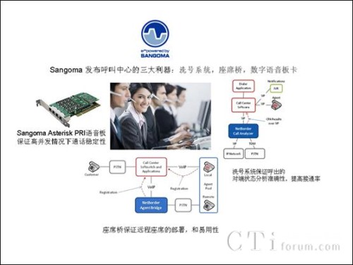 多年的北美通信市場(chǎng)和asterisk開(kāi)源市場(chǎng)的磨練,和Sangoma產(chǎn)品通過(guò)在國(guó)際市場(chǎng)的經(jīng)驗(yàn),sangoma 發(fā)布的產(chǎn)品充分得到了呼叫中心國(guó)際廠商和asterisk 呼叫中心廠家的認(rèn)可,在洗號(hào)系統(tǒng),橋座席,語(yǔ)音板卡上面保證了呼叫中心的穩(wěn)定性,提高了呼叫中心的接通率,節(jié)省了座席遠(yuǎn)程管理的成本。同樣,Sangoma 也非常希望分享Sangoma在國(guó)外市場(chǎng)的成果,把卓越的產(chǎn)品帶給呼叫中心的廠家和客戶(hù)。