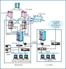 人工座席臺完成人工受理功能,與智能交換機通過1B+1D話務(wù)員座席電路的連接方式、采用遠端模塊方案進行連接,人工秘書臺網(wǎng)絡(luò)業(yè)務(wù)與短消息調(diào)度中心通信的連接采用華為公司數(shù)據(jù)接入設(shè)備DCM2000建立起2*64K數(shù)據(jù)通路;