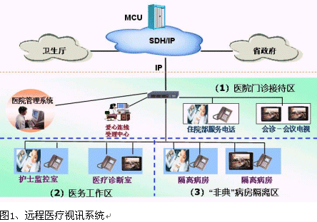 醫(yī)院通過視頻終端,對外推出遠(yuǎn)程醫(yī)療。一來可以避免病人因為害怕到醫(yī)院就診而耽誤病情,同時也防止了人們到醫(yī)院受到不必要的感染。同時醫(yī)院還可以設(shè)立非典咨詢、診斷中心,人們可以直接撥通咨詢中心的視頻終端進(jìn)行相關(guān)咨詢和對自己病情的確診。避免沒有病上醫(yī)院反而感染,也避免因為怕上醫(yī)院而耽誤非典的治療。