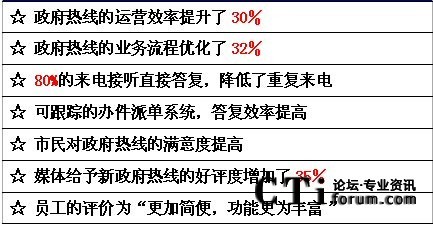 在我們的采訪中,深圳市政府認(rèn)為,建設(shè)法治政府、廉潔政府、效率政府、有限政府、陽(yáng)光政府和責(zé)任政府,前提是政府必須完成轉(zhuǎn)型。政府行政體制改革的最終目標(biāo)是要達(dá)到行政權(quán)力規(guī)范,服務(wù)型的一個(gè)政府。因而,為市民提供專業(yè)權(quán)威和有效的政府熱線服務(wù)成為題中之意。通過深圳市12345政府熱線的成功應(yīng)用,我們可以體會(huì)到呼叫中心應(yīng)用于政府及公用事業(yè)部門后,受益的不僅是千百萬(wàn)公眾,更重要的是加速了在社會(huì)急劇變革時(shí)代政府職能的現(xiàn)代化轉(zhuǎn)型。