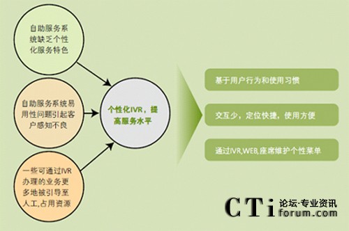 最終用戶可以提取常用業(yè)務(wù)定制自己的IVR菜單,減少語音提示和操作步驟,獲取服務(wù)更為準(zhǔn)確快捷,提升了業(yè)務(wù)受理效率,降低了對(duì)系統(tǒng)的占用時(shí)間。自動(dòng)業(yè)務(wù)流程隨著最終用戶對(duì)受理業(yè)務(wù)需求的變化,運(yùn)行效率也會(huì)隨之變化,系統(tǒng)將對(duì)自動(dòng)業(yè)務(wù)流程的所有節(jié)點(diǎn)進(jìn)行跟蹤分析,根據(jù)效率最大化原則對(duì)業(yè)務(wù)節(jié)點(diǎn)進(jìn)行排序和調(diào)整。這些細(xì)節(jié)的改進(jìn),可以最大限度地降低每次交互占用的時(shí)間,提升了客戶滿意度,降低了交互成本。