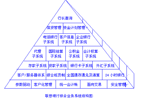 聯(lián)想銀行綜合業(yè)務(wù)系統(tǒng)是聯(lián)想集成系統(tǒng)有限公司為現(xiàn)代銀行設(shè)計的、