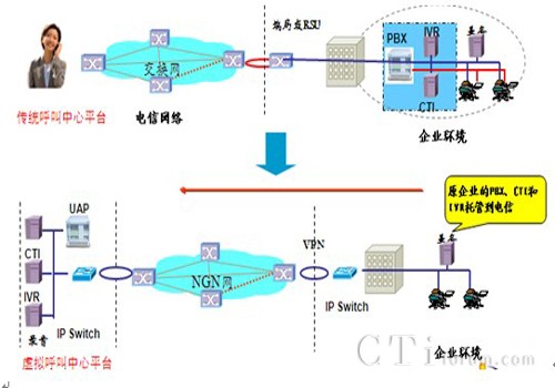 在CCOD(云呼叫中心)的支持下企業(yè)不需要投入任何呼叫中心系統(tǒng)的軟硬件,只需向運(yùn)營商申請?jiān)坪艚兄行馁Y源,企業(yè)就可以迅速建立起自己的呼叫中心系統(tǒng)。