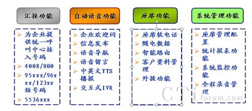 在結(jié)合號百平臺在電信NGN網(wǎng)搭建的呼叫中心平臺,企業(yè)可以通過租用資源來組建屬于自己的呼叫中心;使普通電腦可以成為呼叫中心;還具備一般呼叫中心功能外,還具有座席全國部署、快速開通等特點(diǎn)。