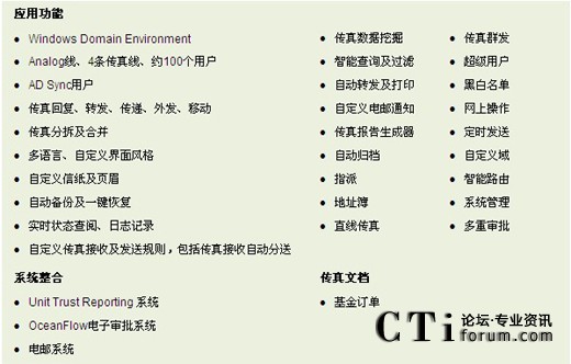 大新銀行Information Technology Division 項目經(jīng)理Benjamin Chu指出:“OceanFax Fax Server具有全面而強大的功能,支持電子傳真及自動傳真,系統(tǒng)易使用和管理;通過與Unit Trust Reporting系統(tǒng)及OceanFlow電子審批系統(tǒng)的整合,理順大新銀行投資基金業(yè)務,實現(xiàn)工作的自動流程。該整合能提高效率、降低成本、保證信息安全及快速帶來投資回報。”