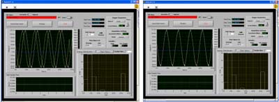 當(dāng)兩個(gè)(或多個(gè))設(shè)備一起工作并對時(shí)間有精確要求的時(shí)候,就需要在它們之間進(jìn)行同步。同步是基于在兩個(gè)設(shè)備之間規(guī)定一個(gè)共同的時(shí)間參考,試想如果將不同音軌的音頻訊號(hào)分別錄在不同的磁帶機(jī)上,則必須將這兩個(gè)磁帶機(jī)的磁帶傳送軸鎖定在一起,否則將來撥放出來就會(huì)有相位上的誤差,這個(gè)過程就稱為同步。假使這兩個(gè)設(shè)備沒有進(jìn)行同步,無論它們開始的時(shí)間多么一致,也會(huì)由于兩臺(tái)設(shè)備在機(jī)械結(jié)構(gòu)的差異而產(chǎn)生時(shí)間漂移。同樣的,對于數(shù)據(jù)采集卡也是一樣的概念,甚至在要求上更為嚴(yán)格。而如何達(dá)到數(shù)據(jù)同步采集,最基本的要求就是不同模塊間要有相同的工作時(shí)脈與一致的觸發(fā)信號(hào),而這個(gè)相同的時(shí)脈信號(hào)需來自于共同的外部儀器。下圖中的弦波是兩張數(shù)據(jù)采集卡在同步與異步采集同一信號(hào)源所得的波形,在左圖中因異步而存在一向位差,右圖中則是同步觸發(fā)下得到完全重迭的波形。