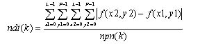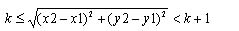 其中f(x1, y1),f(x2, y2)為圖中距離大于k、小于k+1的任兩點(diǎn)的值,即x1、y1、x2、及y2要符合下列式(3.2)的判斷式。又npn(k)代表的是,圖中所有符合上列條件的點(diǎn)對數(shù)。